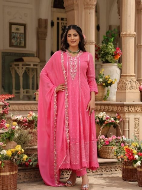 Premium Sky-Blue Viscose Chiffon Anarkali