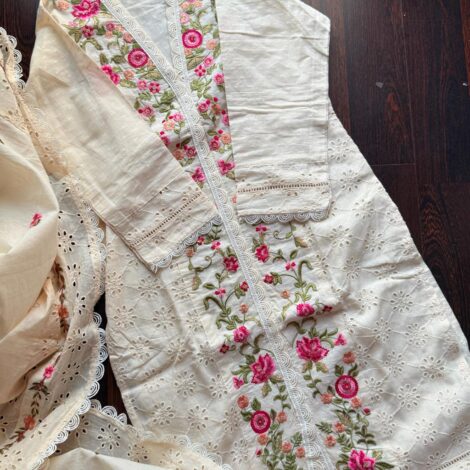 Premium Kora Cotton Embroidered lvory Suit