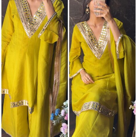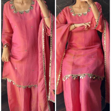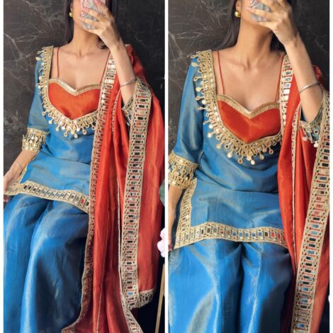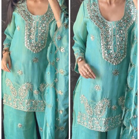 Premium Mirror Gotta Shimmer Tissue Short Kurta Set – Aqua