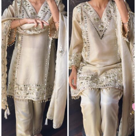 Premium Gold Crush Tissue Silk Suit