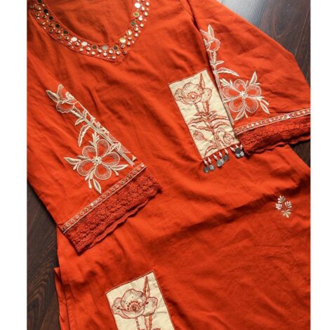 Premium Cotton Embroidered Suit – Rust Orange