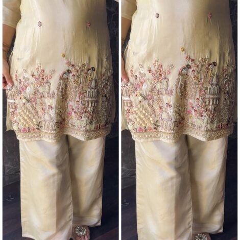 Premium Ivory Gold Zardoshi Hand work Bustier Coord