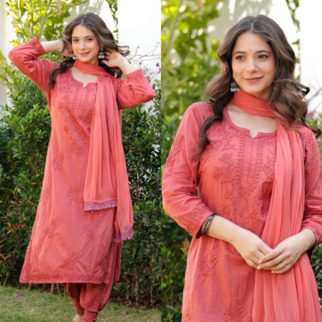 Dual-toned ombre chikankari set – Hot Pink