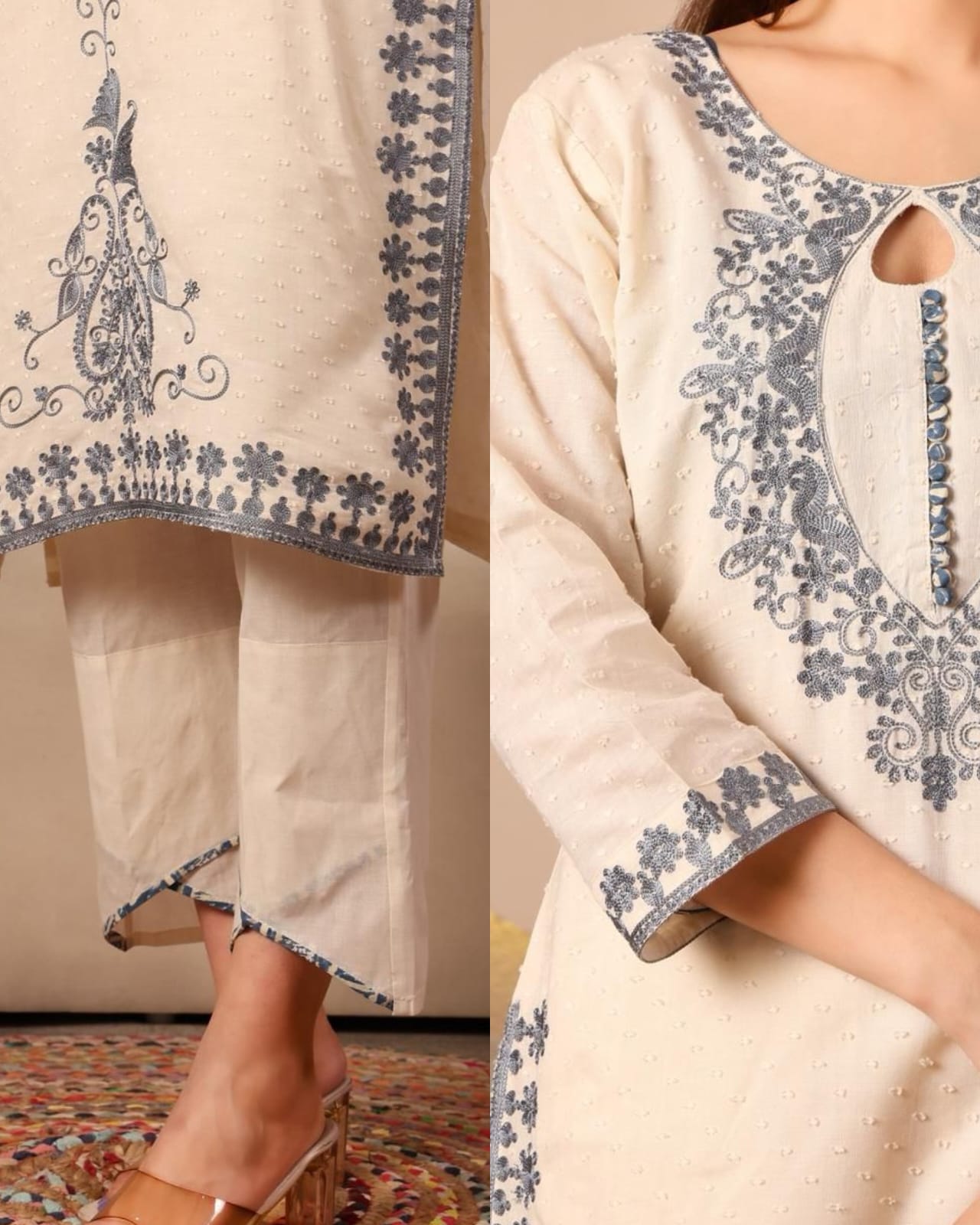 Premium Aari Embroidery Kora Cotton Suit – Grey