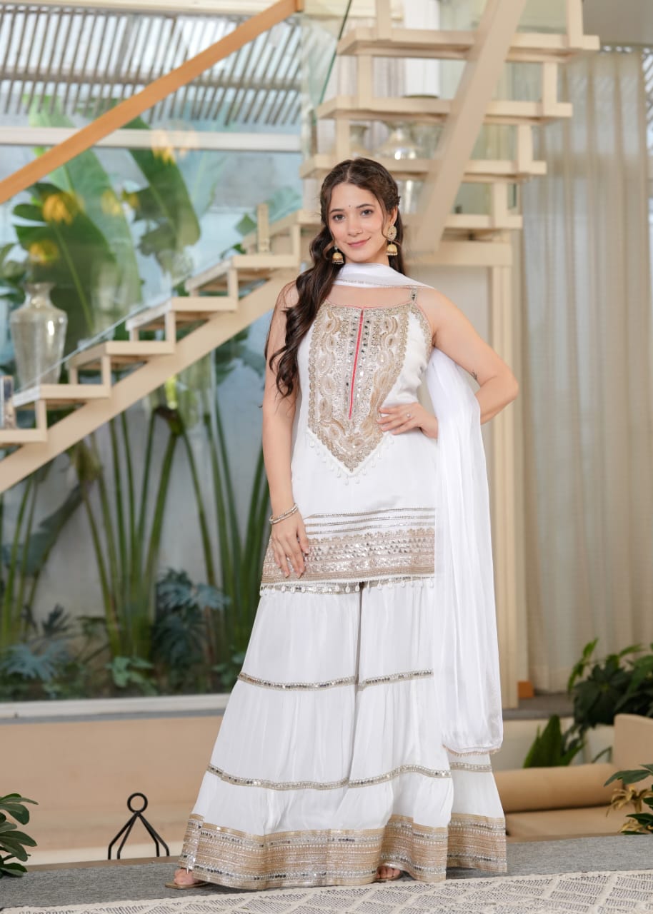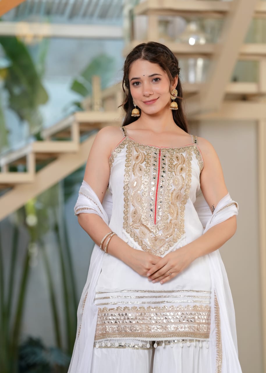 Premium Crushed Cotton Sharara Set with Sleeves Inside