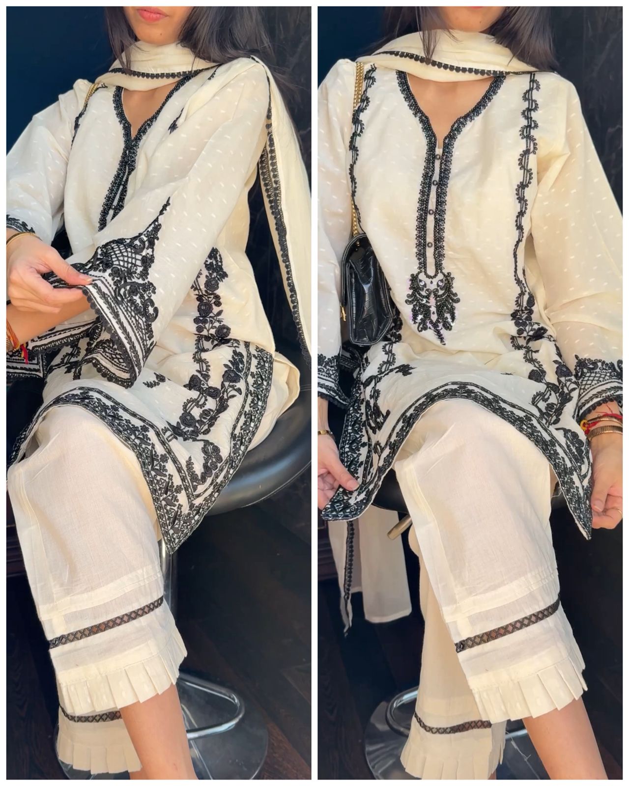 Premium Kora Cotton Short Pakistani Suit-Black Embroidery