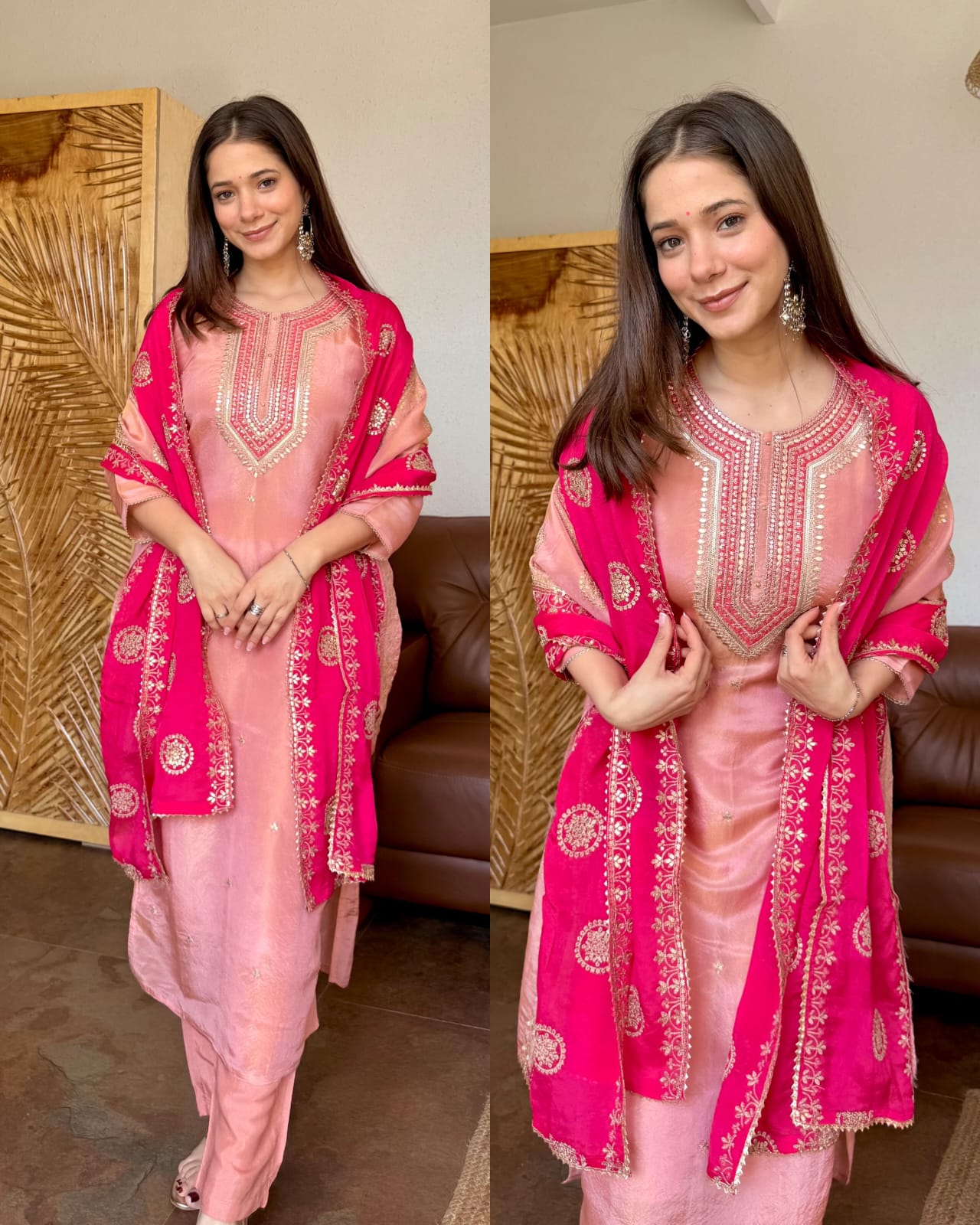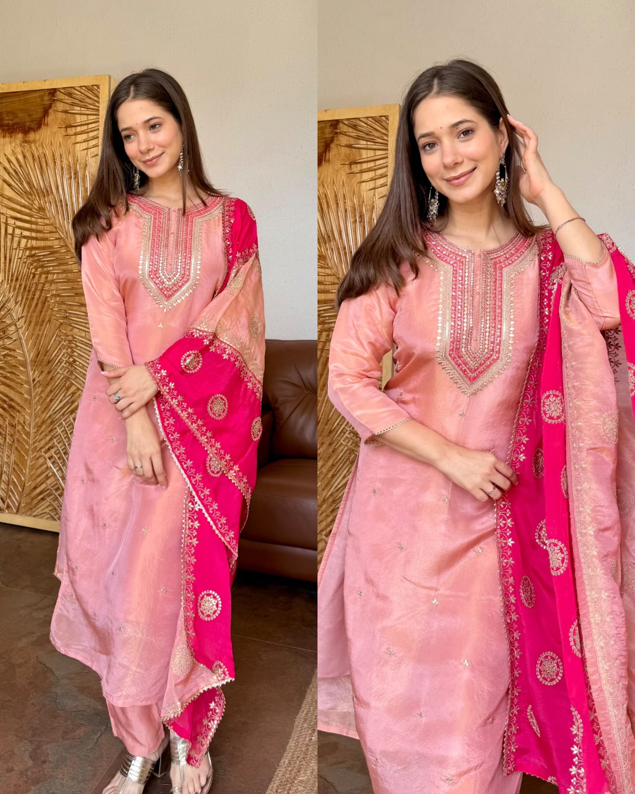 Premium Tissue silk embroidered suit – PINK