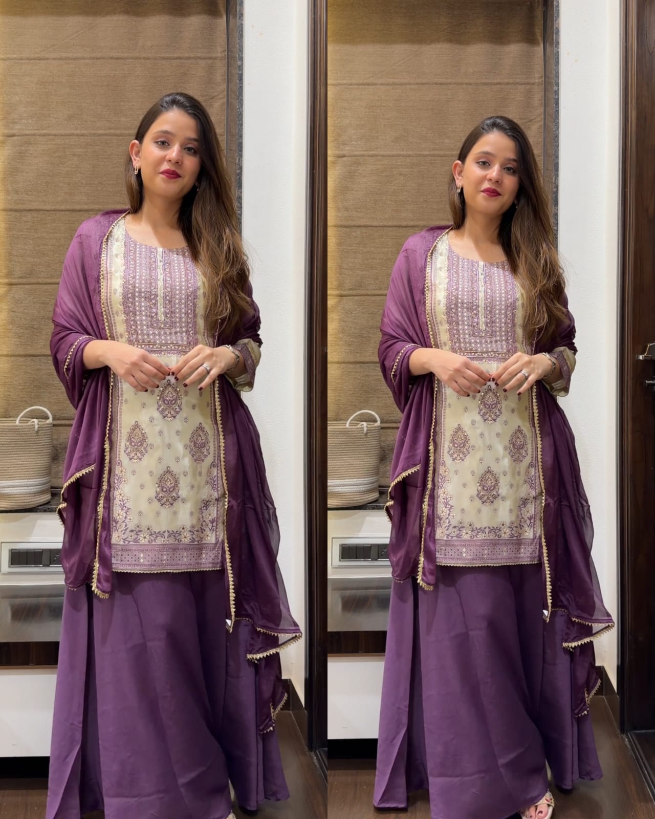 Premium Tissue Silk Short Kurta Set – ivory
