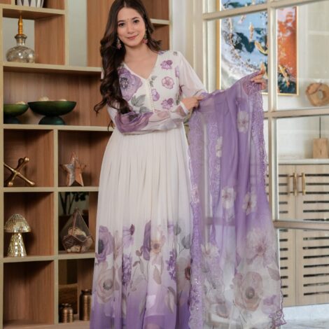 Premium Viscose Chiffon Flared Anarkali- LAVENDER