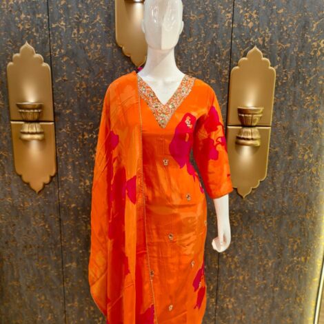 Premium Crepe V Neck Suit – Orange