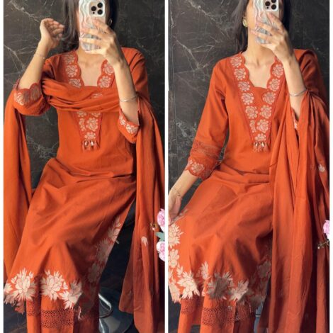 Premium Cotton Embroidered fit – Rust Orange