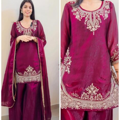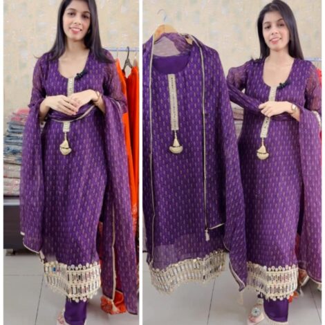 Premium Georgette Mirror Suit -Dark Purple