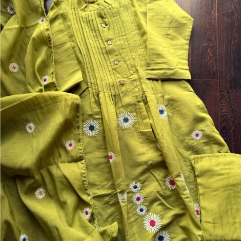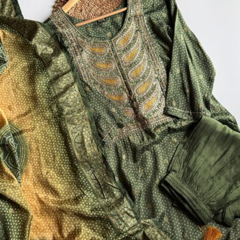 Mul Chanderi Embroidered Suit – Green