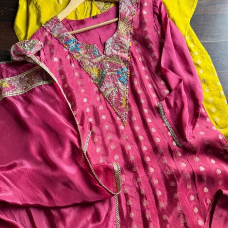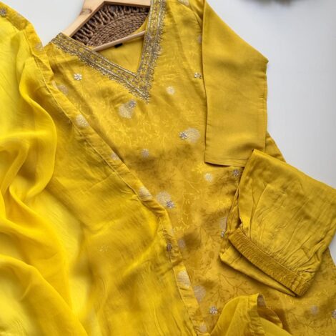 Premium Russian Silk Jaquard Suit – Yellow