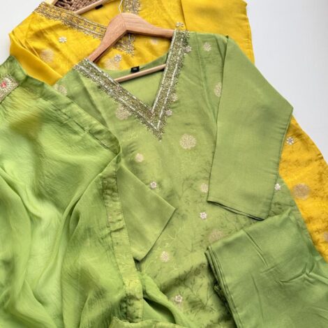 Premium Pure Shimmer Jaquard Suit – Lime